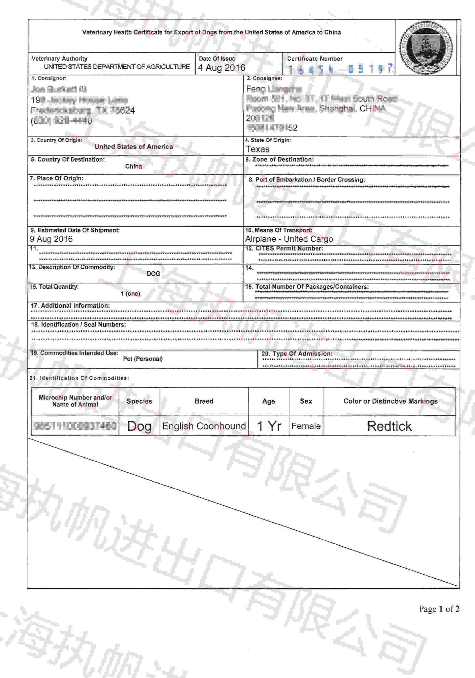 留學(xué)回國人與狗狗同航班抵達(dá) 客戶:留學(xué)回國攜帶狗狗 貨物:寵物狗,1只;操作時間:2個工作日;